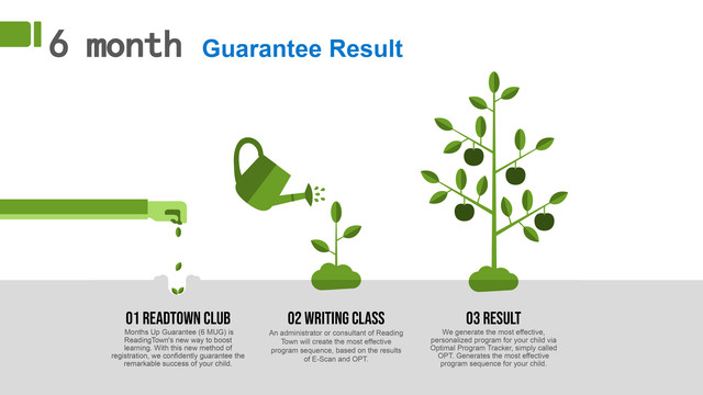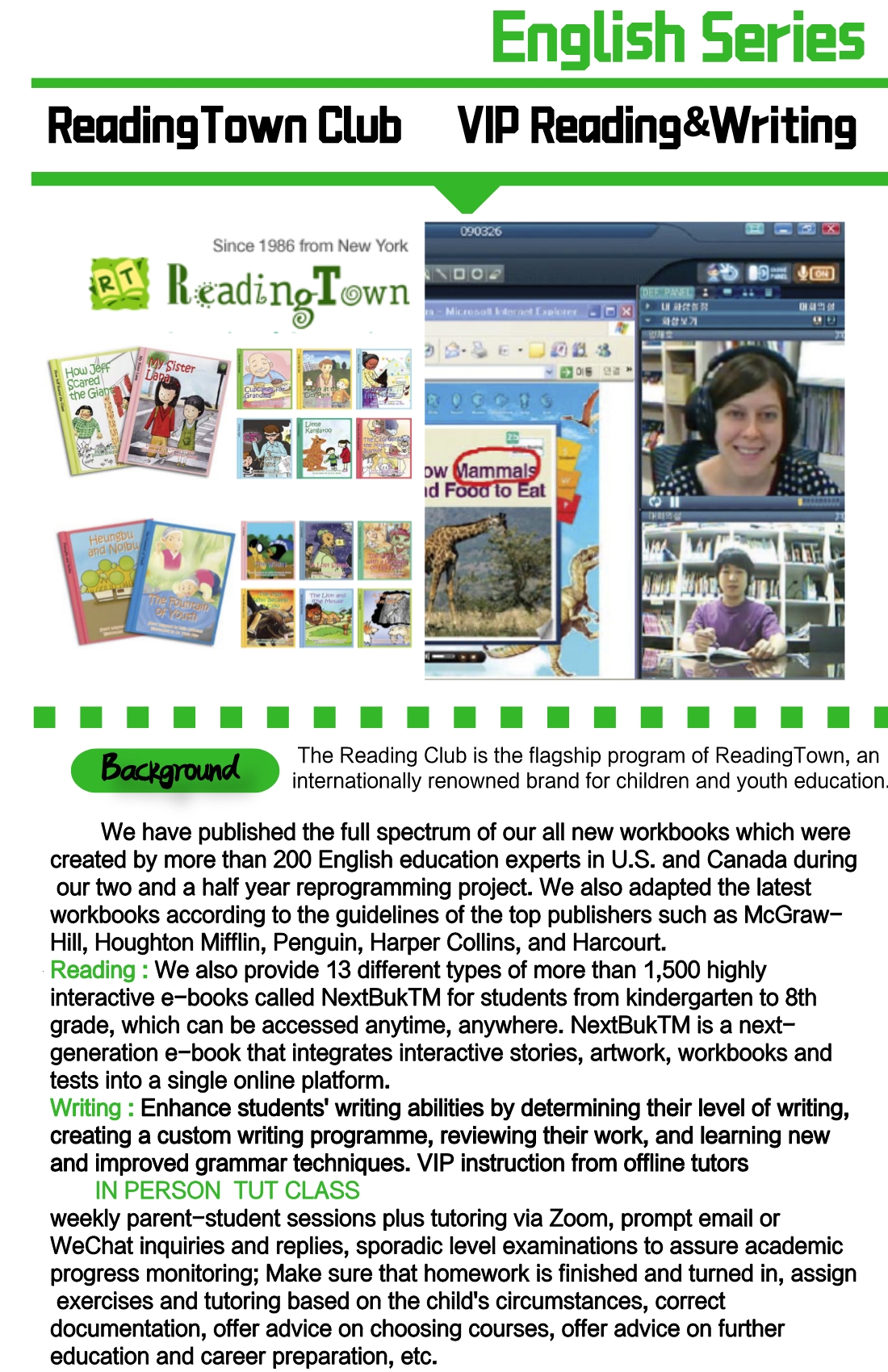 1. You will become a VIP member of ReadingTown. In the membership system, you will enjoy 4 online electronic versions or offline paper books selected by the teacher for you every month (12-24 books in 6 months, 12 books- 48 books in 12 months) + word practice in the system + grammar test in the system + correction of the reading report in the system + reading report sharing meeting once a month.